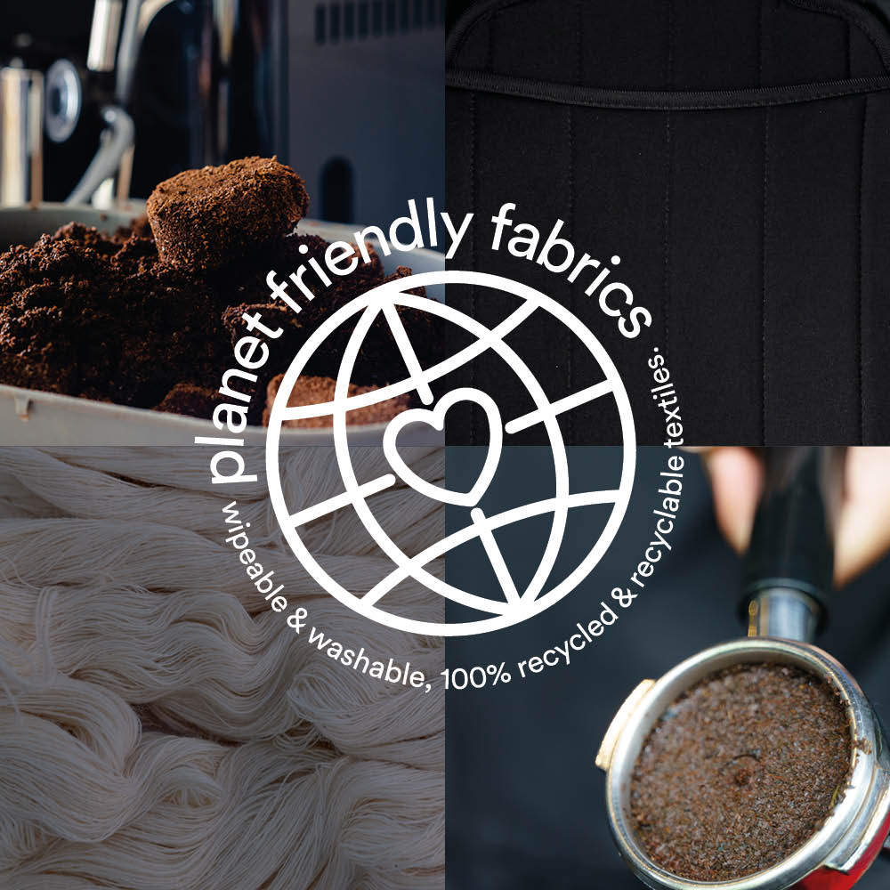 - Stylish and sustainable - made from 100% recycled and recyclable, OKEO-TEK 100 approved fabrics. • Simple one-touch rear wheel braking system.