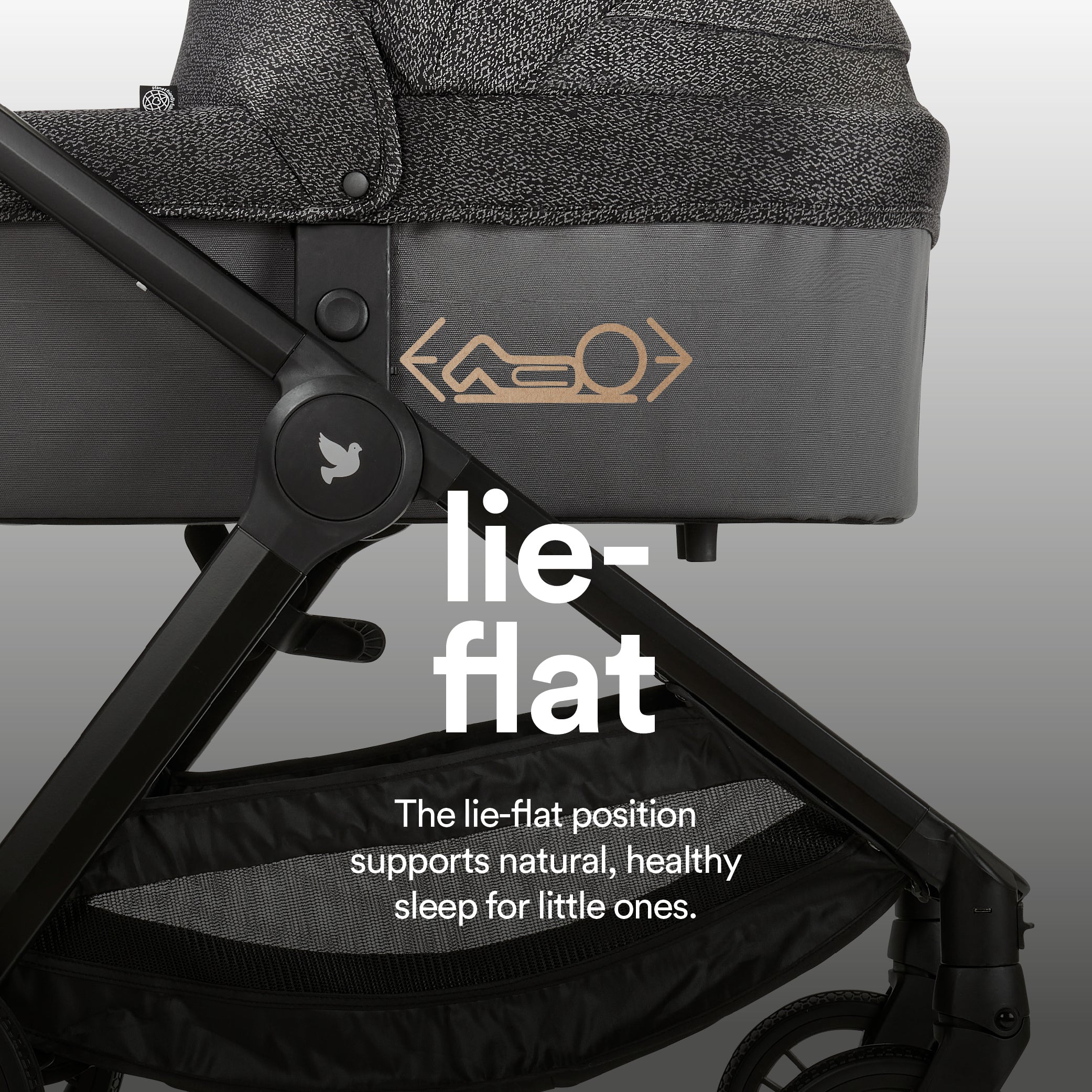 - The lie-flat position supports natural, healthy sleep for little ones.