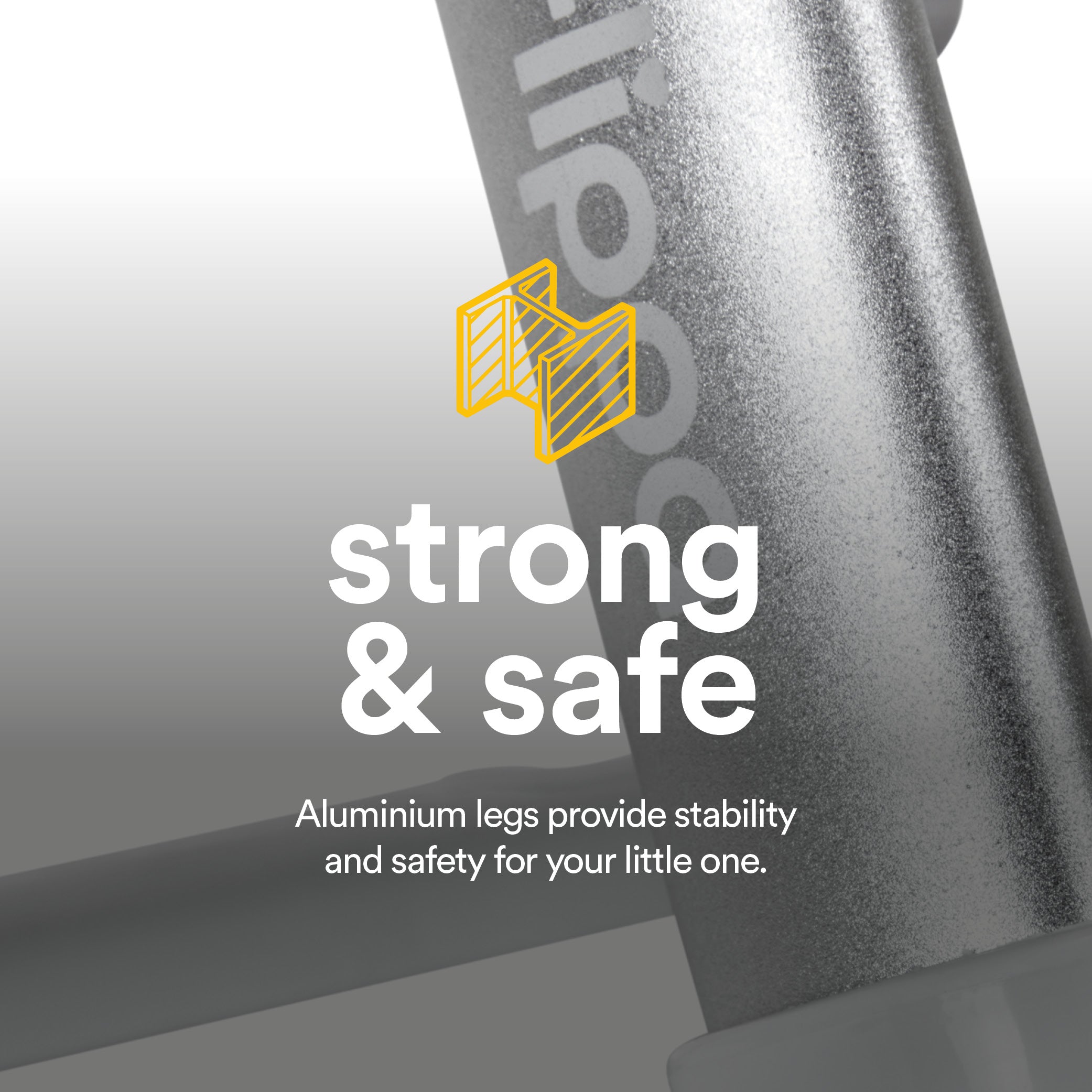 - Strong and safe - Aluminium legs provide stability and safety for your little ones.