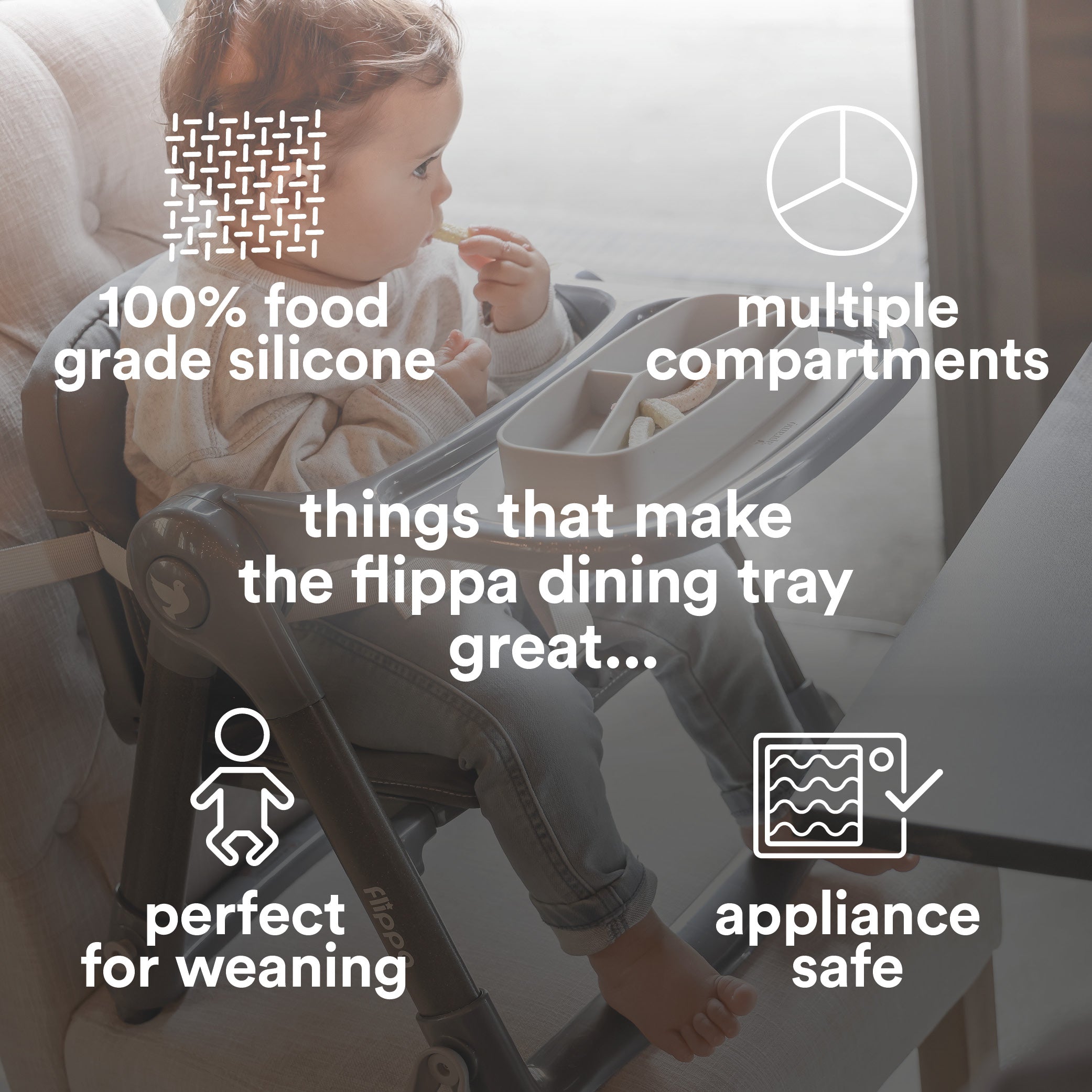 The Flippa Dining Tray, a game-changer for your baby's dining experience. Thoughtfully crafted to harmonise with the Flippa Classic and Flippa Rockstar, this tray empowers your little one's self-feeding adventure, making every mealtime a delightful journey.