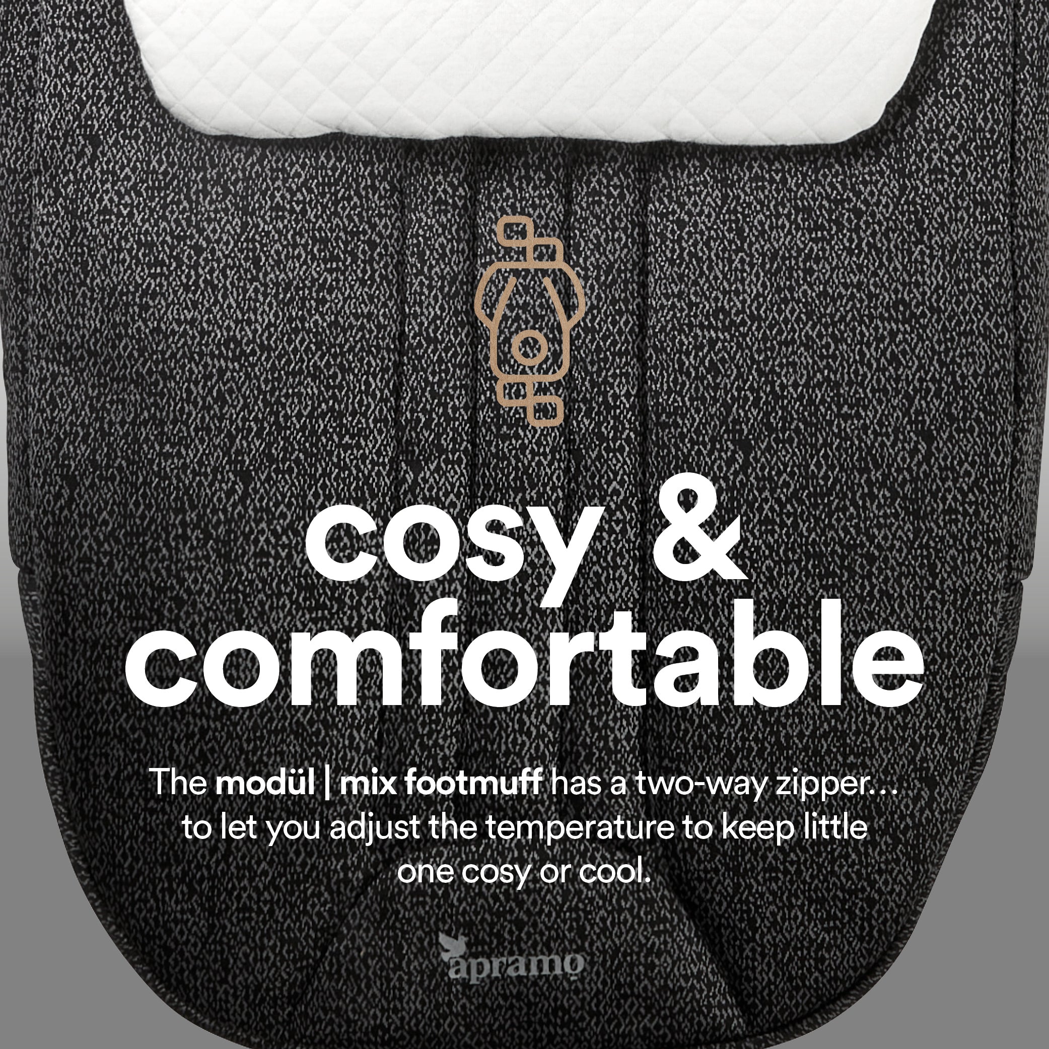 Compatible Harmony: Achieve the perfect fit with our modül | mix switch seat stroller. This footmuff seamlessly integrates with your stroller, providing the ultimate in comfort and style.