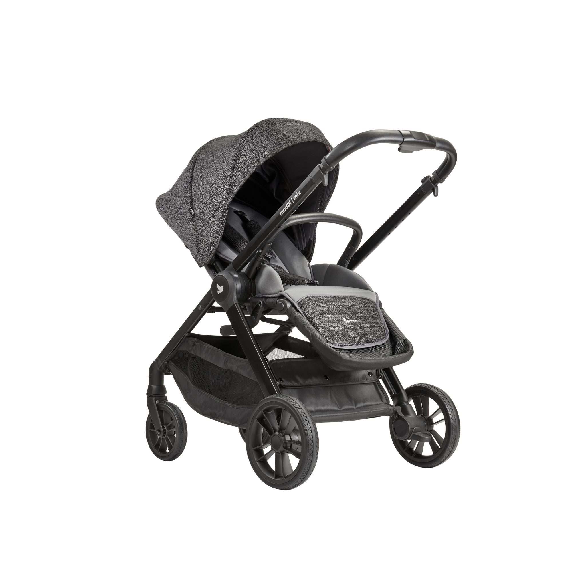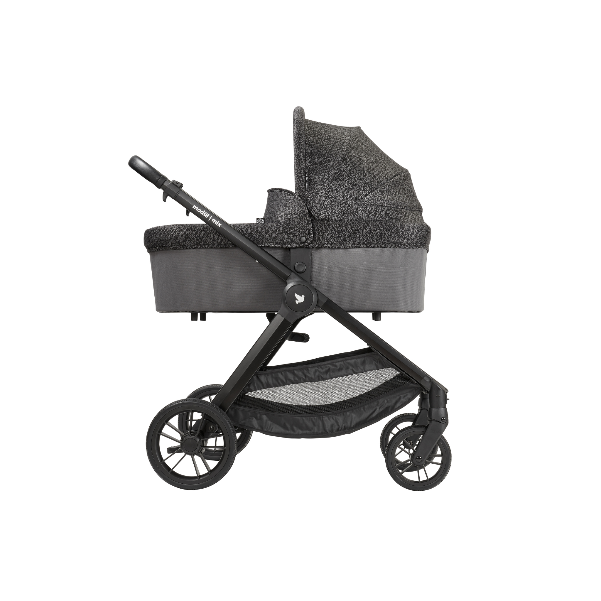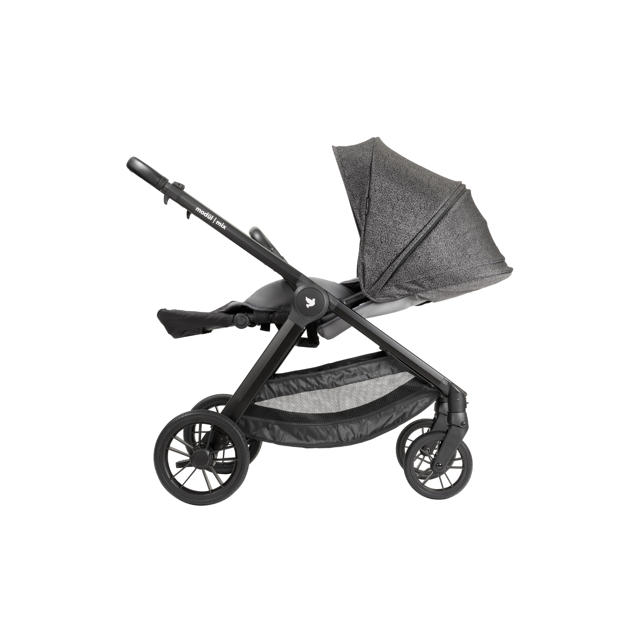 The modül | mono is designed to fit our modül | mix strollers perfectly and with ease with a one click feature directly onto the Mix chassis.
