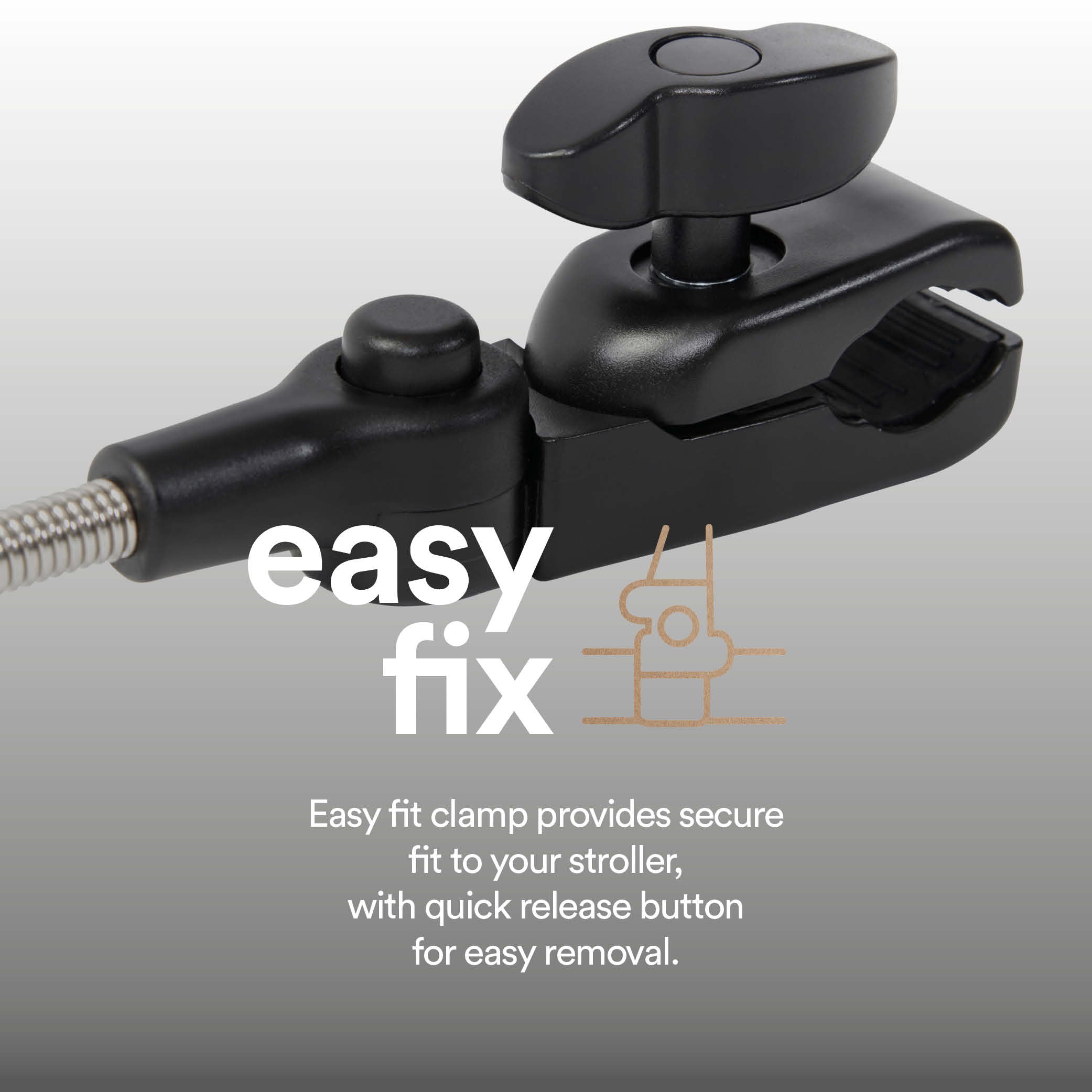 Our easy-fit clamp makes attachment a breeze, ensuring a secure and stable connection to your stroller. When it's time to go, the quick-release button allows for effortless removal, simplifying your on-the-go lifestyle.