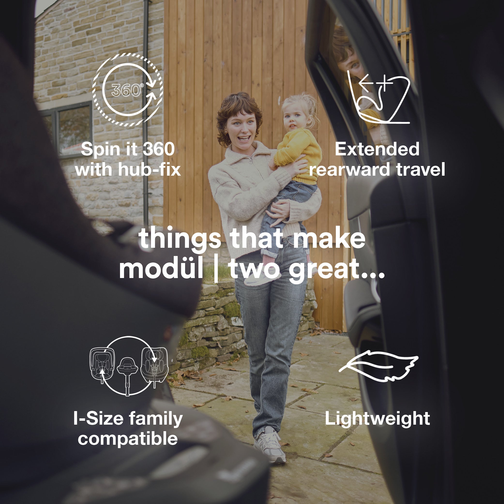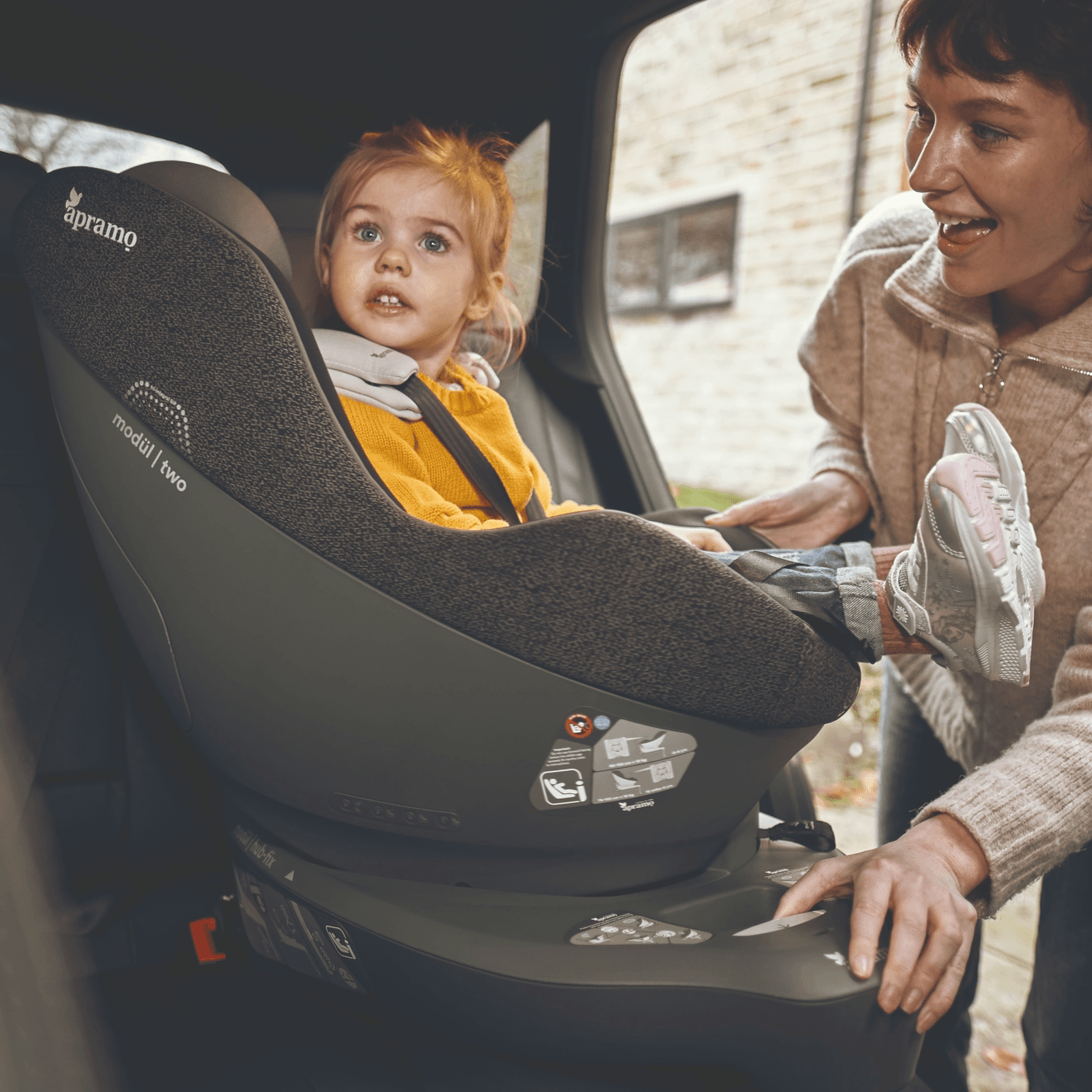 The Apramo modül | two i-Size baby & toddler child seat is simply safe and family flexible, and part of the modül | i-Size system.